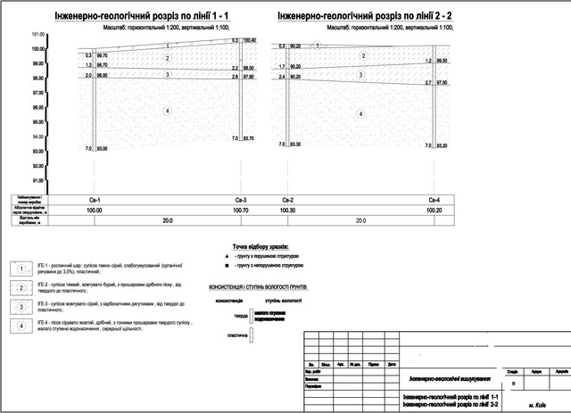- Графічні додатки (із інженерно-геологічними розрізами, виробками результатів статичного зондування, картою підтопленості території і т. д.)